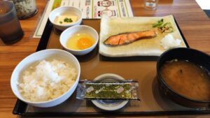 - しゃけ塩焼朝定と生たまご